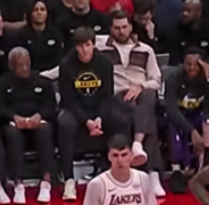哥俩好!东契奇和里夫斯场边观战贴贴坐 东子手直接搭小里身后